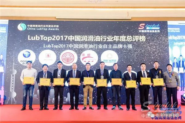 王连竹总经理(左六)代表三特润滑油获颁“LubTop2017行业自主品牌十强”