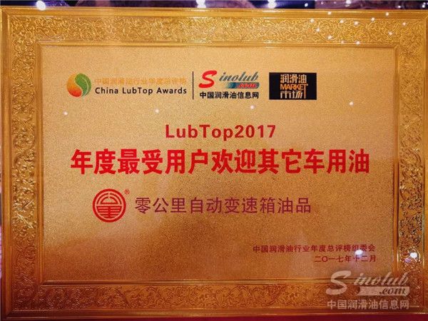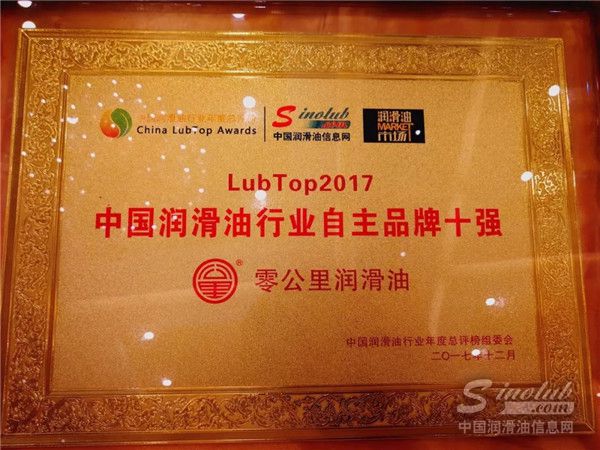‘’LubTop2017中国润滑油行业年度总评榜‘’---被誉为行业内最具规模和影响力的全国性评选活动,零公里润滑科技有限公司依靠消费者的广泛认可和自身实力在此次活动中脱颖而出,零公里润滑油荣获“中国润滑油行业十大自主品牌”“年度最受欢迎变速箱品牌”两大奖项,满载而归。