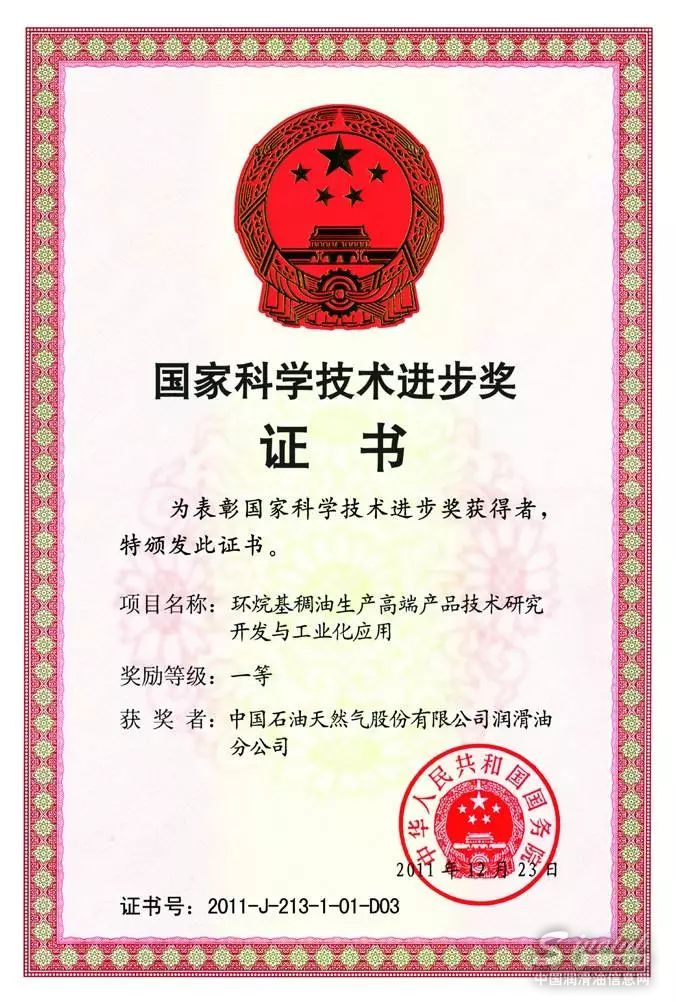 “环烷基润滑油系列产品开发及应用”获得2011年国家技术进步一等奖,技术应用于大亚湾核电站和国家重点工程1000KV和±800KV特高压输变电线路,使高端变压器油市场份额达到80%。