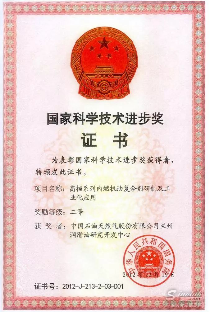 “高档系列内燃机油复合剂技术”获得2012年国家技术进步二等奖,应用于东风、一汽、上柴、铃木、福田等OEM客户,是国庆60周年阅兵指定用油。