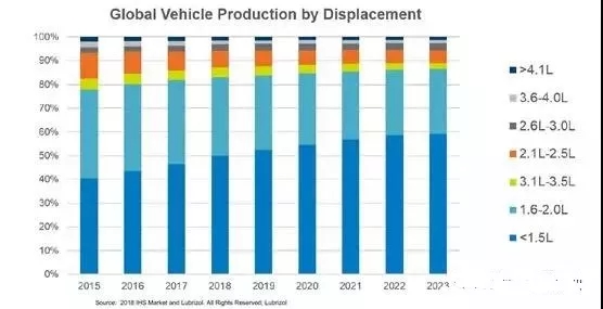 在发动机尺寸方面,至2023年有75%的发动机将小于2.0升。
