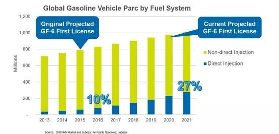 到2021年有27%的新车将采用直喷技术。因此发动机技术革命性的变革将推动新的用油标准的发展。