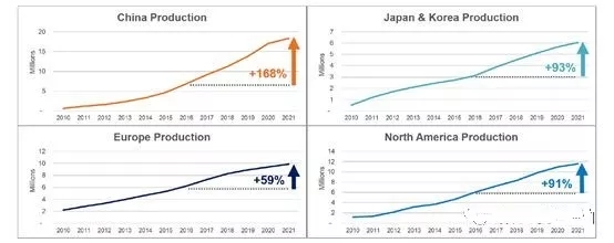 采用GDI直喷技术的发动机在全球的产量预测来看,中国的增长是巨大的。