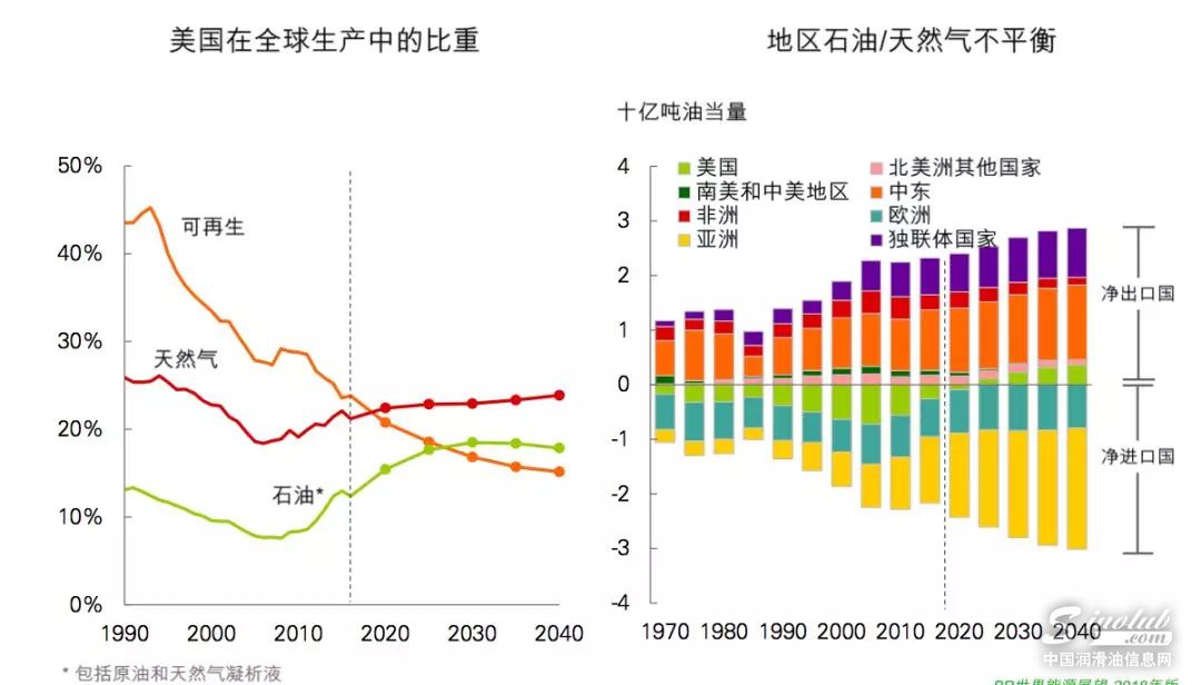 ◆在渐进转型情景下,美国在全球石油(原油和天然气凝析液)生产中的份额从现在的约12%上升到2040年的约18%。这一比例超过沙特阿拉伯——全球第二大能源生产国——到2040年的13%。在天然气方面美国的领先地位更为明显:占2040年全球天然气生产的24%,位居第二的是俄罗斯(14%)。