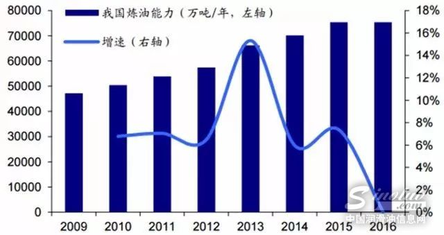 近两年中国炼油能力不断扩大,进入2016年以后中国的炼油能力将由前几年的减少和略增转变为较快增长。