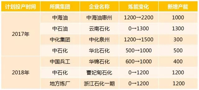 由于环保政策加码,成品油升级,以及原油进口权等因素,我国炼油新增产能与落后产能淘汰同步加快。
