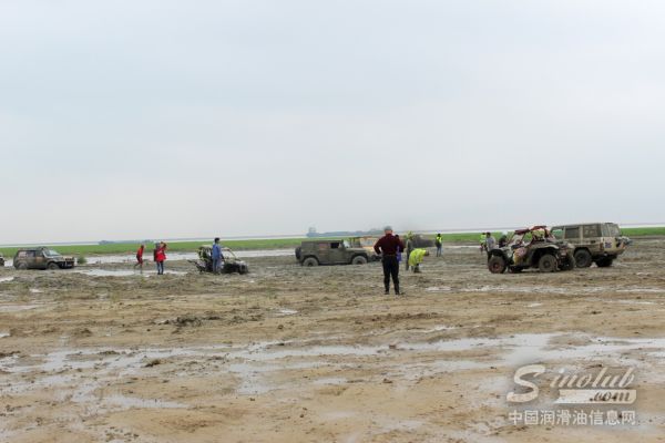 众多赛车陷在泥滩中