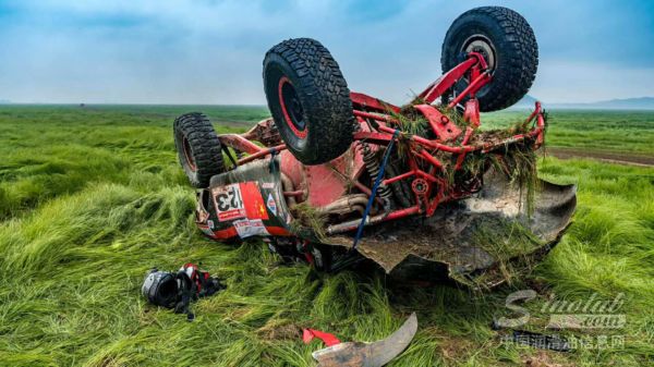 这台超级赛车加入了被称为“高温高速大功率发动机的保护神”的西铁古全合成PAO+酯发动机润滑油999(20W-60),在SS-1、SS-2赛段保持着良好势头,顺利完成了比赛。然而昨天在SS-3赛段,刚刚发车便像一匹脱缰的野马,在赛道内因为撞上障碍物发生滚翻,连续后空翻两周后车顶着地,前车盖撞毁,只能暂时退出了比赛。所幸的是,特制改装的车架完好,车手和领航员并无大碍。