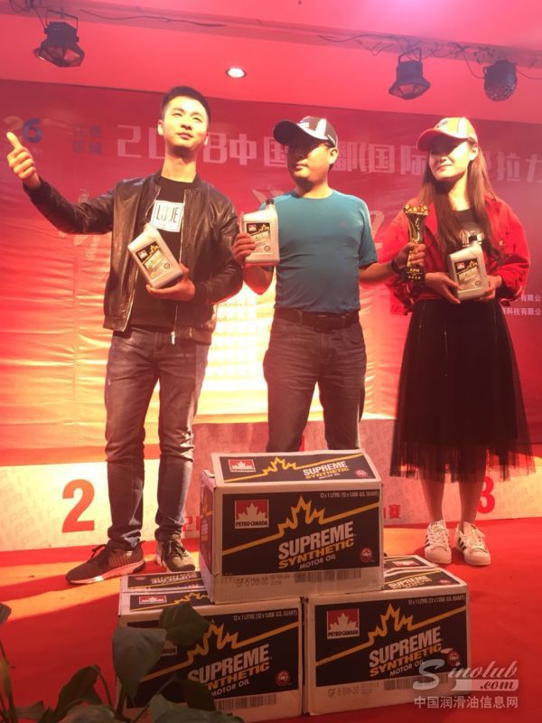 (左一为加拿大石油南区销售总经理许银清,中间为江西星火体育发展有限公司的张任飞,右一为江西汽车运动协会的秘书长习建飞)