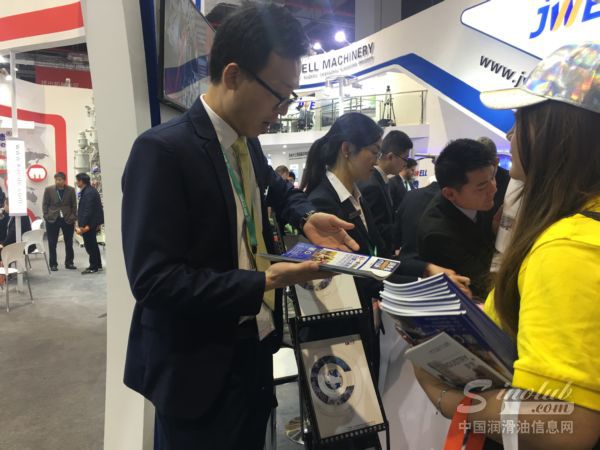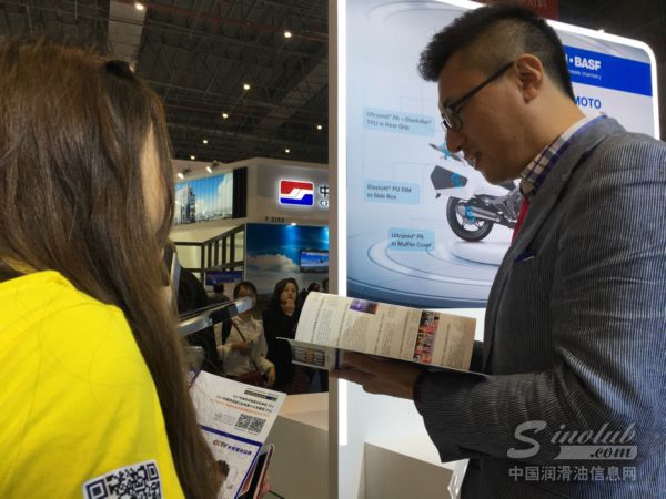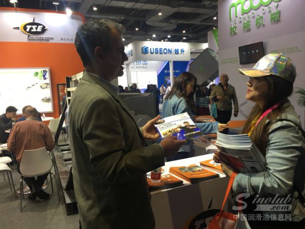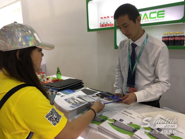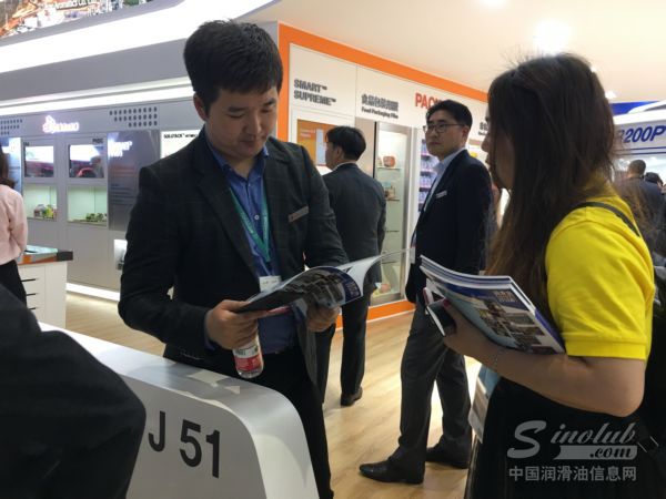 中国润滑油信息网小编现场派发《润滑油市场》杂志,与参展商进行沟通交流