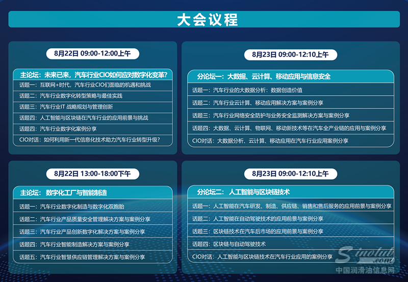 作为中国汽车行业首选信息化沟通交流盛会,“中国汽车CIO峰会”关注新一代汽车产业以及智能技术发展,在绿色出行的背景下,将涵盖商用车、乘用车、新能源汽车等整车企业、核心零部件企业,全方位展示汽车产业信息化现状。