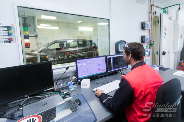 (壳牌工作人员调整实验室参数对博越进行模拟环境测试)