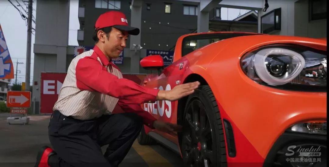 和国内不同的是,日本加油站一般会有两个员工为一台车服务。一个在车尾加油,一个在车头帮客户清洁车的前挡风玻璃和检查轮胎。
