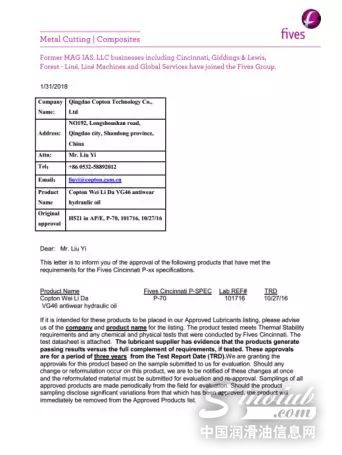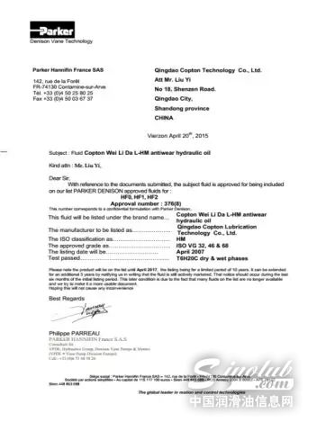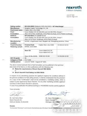 日前,康普顿威力达抗磨液压油在国内率先通过了博世力士乐Bosch Rexroth 90235认证。这是继获得帕克丹尼森PARKER DENISON HF-0 HF-1 HF-2的全系列认证和法孚Fives P-70认证(原辛辛那提认证)后,康普顿威力达抗磨液压油又一次获得的高规格认证。
