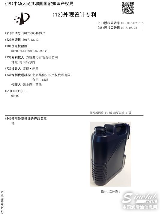 现在,力魔机油桶已正式获得了由中华人民共和国国家知识产权局颁发的外观设计专利。日后,力魔将采取一切必要的法律手段打击仿冒力魔产品外观等各类侵犯专利权的行为,维护品牌的合法权益!
