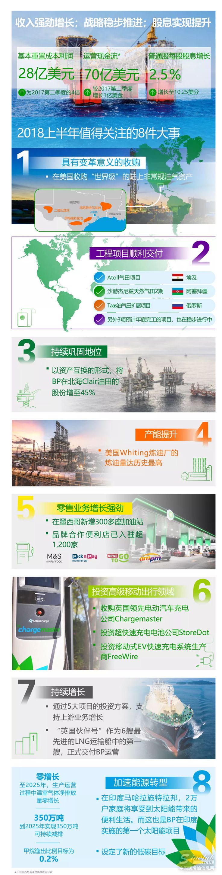 我们实现了2018年第二季度运营与财务的强劲增长。这得益于对既有策略与计划的稳步推进。与此同时,BP通过对必和必拓在美国陆上非常规油气资产的收购,以及对英国领先电动汽车充电公司Chargemaster的收购,实现了对公司业务组合的升级。值得一提的是,由于业务的稳步推进以及坚实的财务表现,BP在近4年来首次对股息实现提升。这不仅兑现了我们向股东增加分配的承诺,还体现了我们对未来的强烈信心!