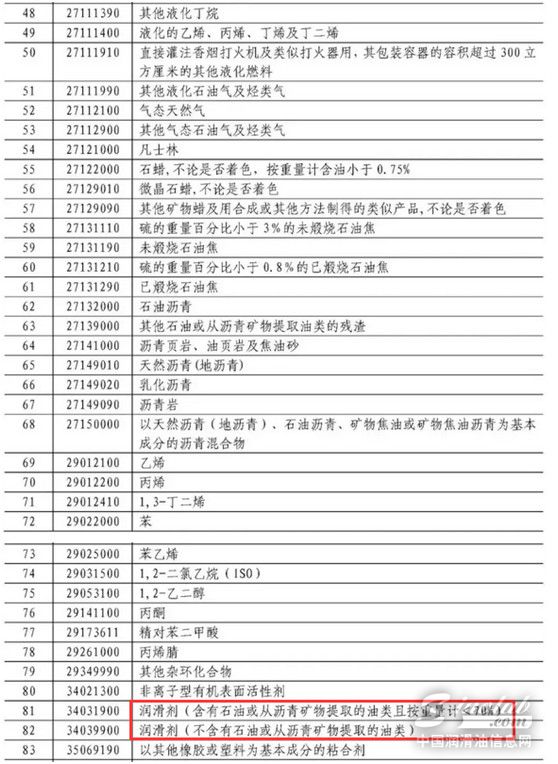 根据商务部2018年第55号公告和《国务院关税税则委员会关于对原产于美国约160亿美元进口商品加征关税的公告》(税委会公告〔2018〕7号),现公布经调整的对美国输华商品加征关税商品清单二,自2018年8月23日12时01分起实施加征25%关税。根据公告清单,中国将对石油、钢铁和汽车等160亿美元美国输华商品加征25%关税,其中包括润滑油、基础油。
