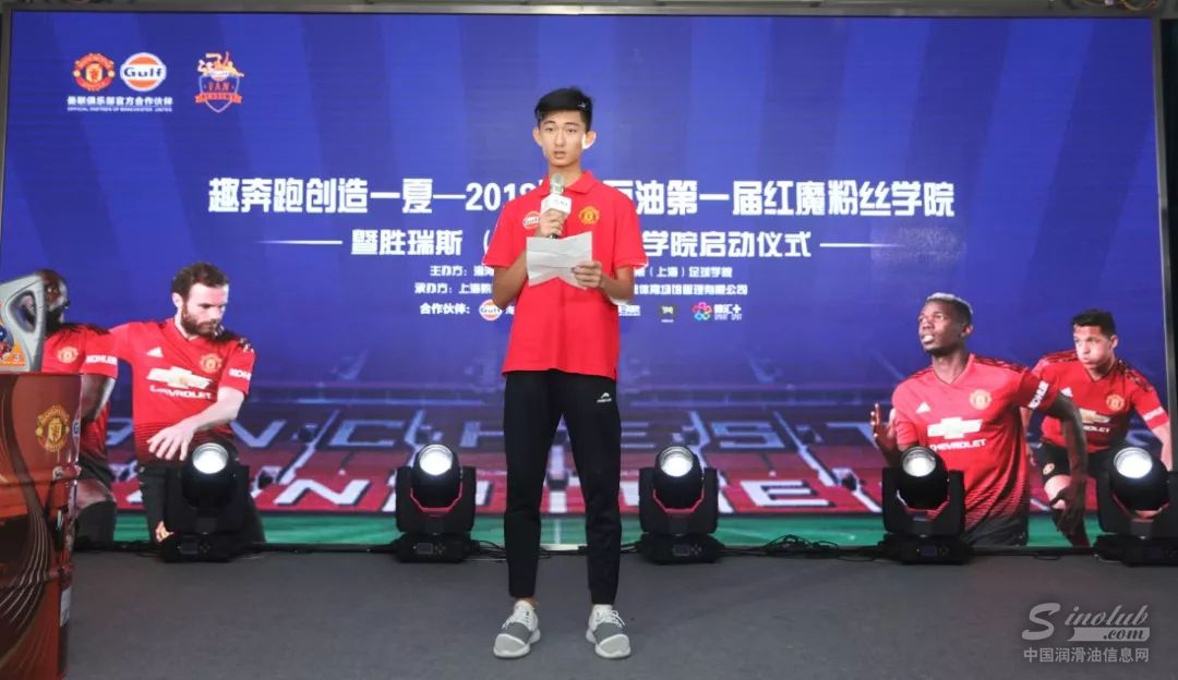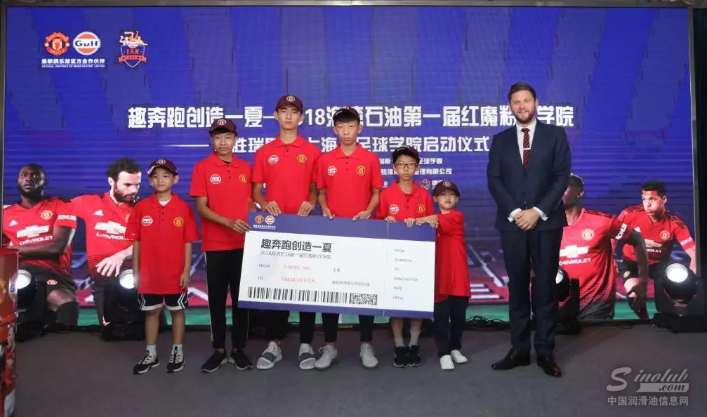 (2018年8月3日,上海)传奇石油巨头GULF海湾石油与曼联足球俱乐部在上海举行“趣奔跑创造一夏——2018第一届海湾红魔粉丝学院”少年团成军仪式。这是继GULF海湾石油于2016年正式签约成为曼联俱乐部官方合作伙伴后,双方又一次在中国共同亮相。曼联全球客户关系总监Jamie Lewis 亲临现场,为即将出征的红魔少年们发出来自老特拉福德梦剧场的隆重邀请。