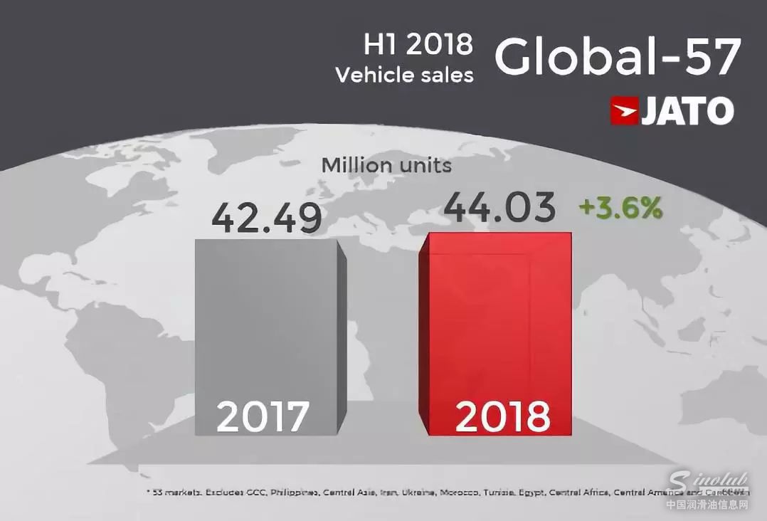 全球领先的汽车行业信息咨询机构JATO通过收集57个国家市场的销量数据,公布了2018上半年全球汽车销量报告。尽管全球经济正受到最大经济体之间贸易战不确定性的威胁,但是,美国良好的经济态势、欧洲指标的改善以及中国经济的不断扩张是推动汽车市场发展的三个关键因素。数据显示,上半年全球汽车销量达4403万辆,较去年同期的4249万辆增长3.6%。