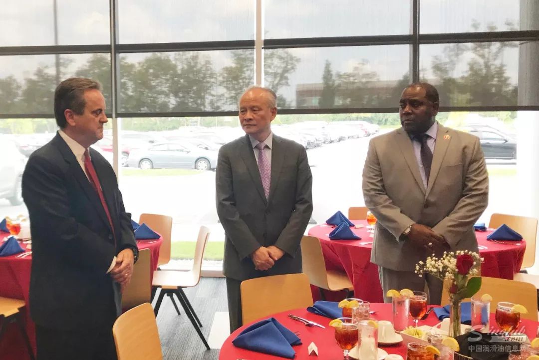 8月14日,中国驻美大使崔天凯携其代表团、肯塔基州政府官员、肯塔基州和加州商界领袖们共同造访了胜牌全球总部的新办公大楼。胜牌国际部及全球产品供应链高级副总裁Craig Moughler先生接待了崔天凯大使及各位贵宾。