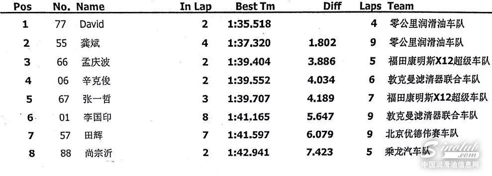 前8名排位赛成绩表