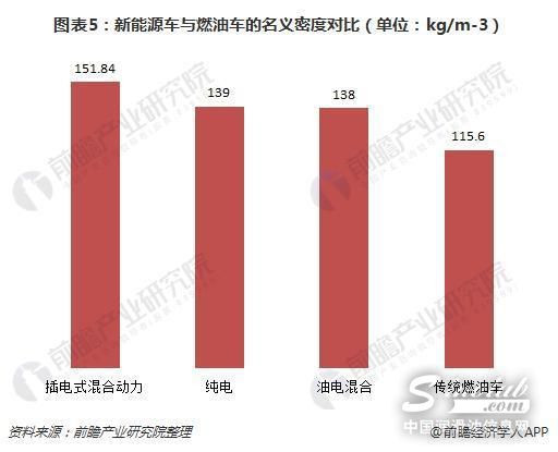 对于新能源汽车来说,更需要通过轻量化技术来平衡使用动力电池带来的质量增加。根据2015年国产燃油车和新能源汽车的对比,新能源汽车产品的名义密度明显偏大,其中插电式混合动力约为151.84kg/m-3、纯电139kg/m-3,均高于传统燃油车的115.6kg/m-3。在短期内无法提升电池能量密度的前提下,急需通过轻量化来提高新能源汽车产品的竞争力。