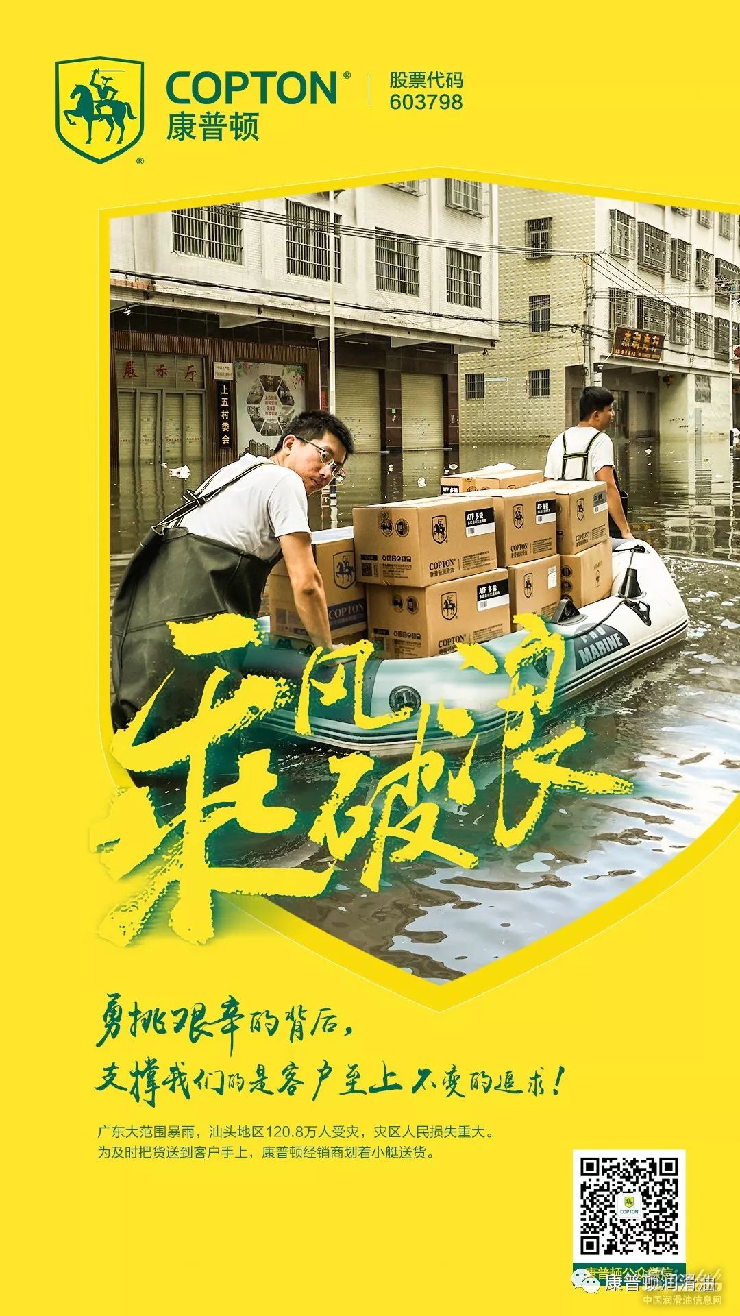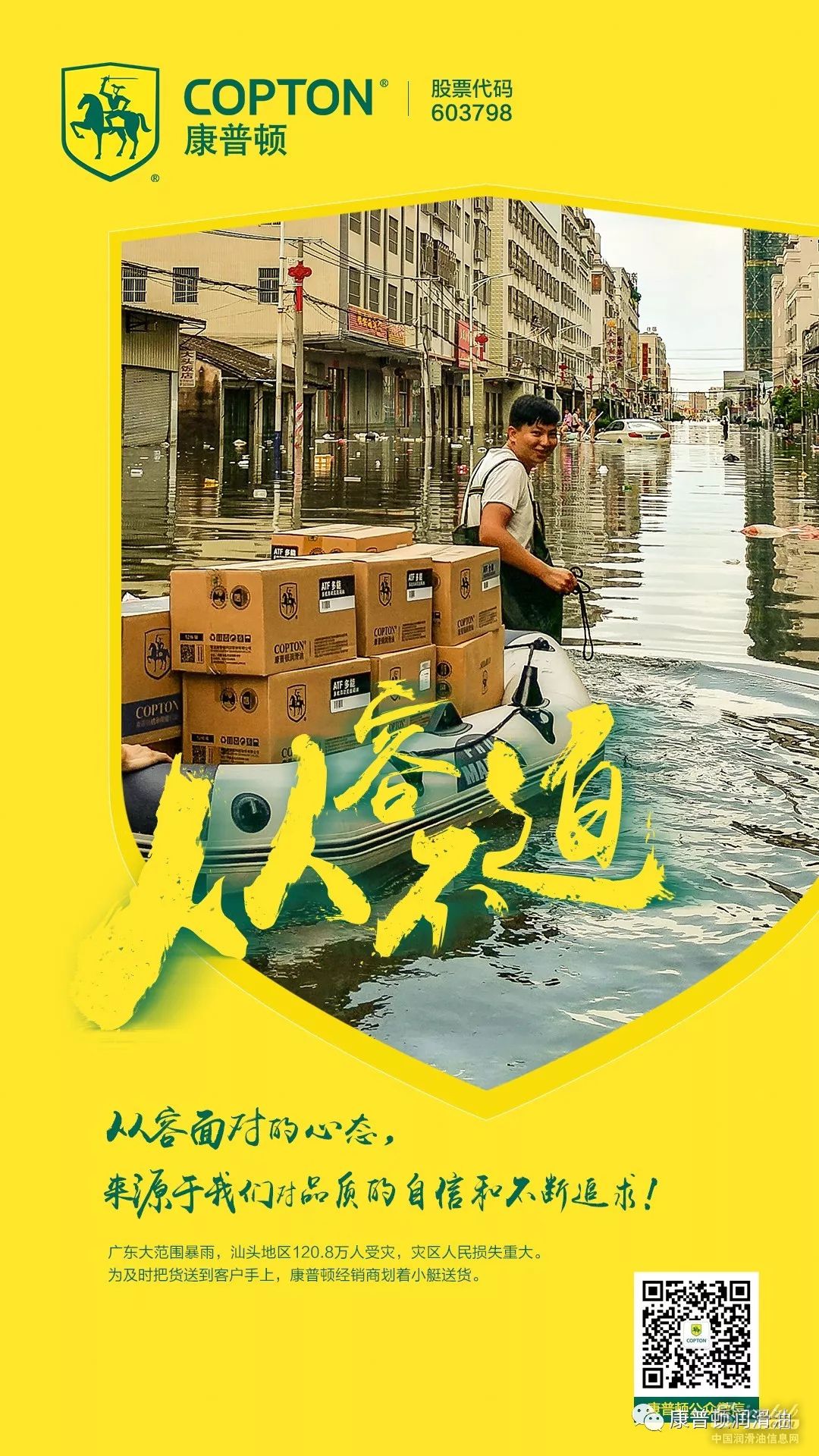 而在今天,又被自己感动了,广东的大型暴雨,让一部分地区受灾,车辆无法正常行驶。康普顿在汕头的经销商,为了更加及时地将康普顿的货物送到客户的手上,启用新型交通工具,利用皮划艇来运输康普顿产品。