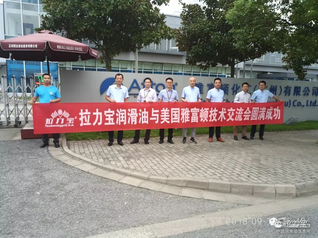 2018年9月11日,拉力宝润滑油与美国雅富顿润滑油添加剂技术交流会在雅富顿苏州研发中心召开。