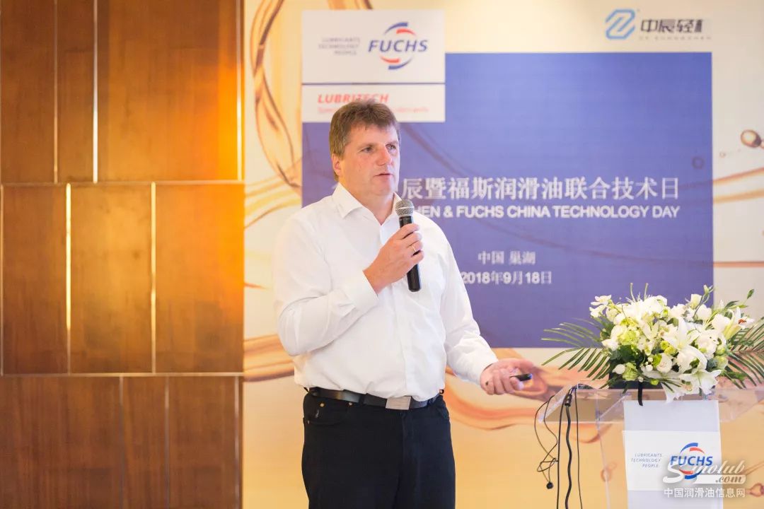 福斯中国特种油销售副总裁Wolfgang Mertel为会议致辞,他在致辞中自豪地表示福斯拥有全面、高质的产品线,专业、优秀的服务团队,先进、发展的运营理念,我们致力于为客户提供一站式润滑解决方案。福斯油品集团是一家全球化企业,在全球拥有58家分公司,伴随我们中国企业“走出去”战略,福斯在全球范围内都有能力、实力为走出去企业在全球范围内提供同质服务。