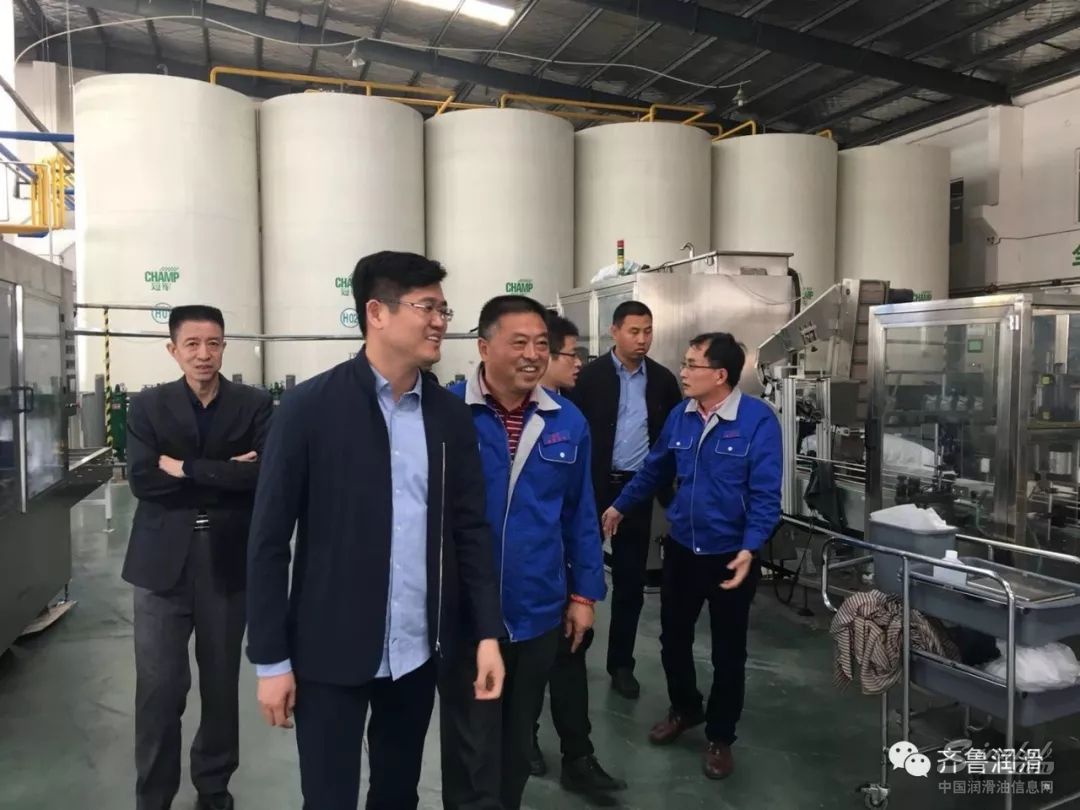 随后参观一行深入车间,从原材料罐区、调和车间以及灌装设备设施区,了解德联石化的生产工艺和经营状况。