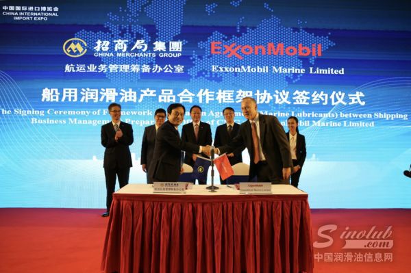 2018年11月8日,中国上海,在首届中国国际进口博览会上,埃克森美孚船舶润滑油有限公司与招商局集团航运业务管理筹办办公室(以下简称“招商局航筹办”)签署了船用润滑油产品合作框架协议。作为国资委确定的中央企业交易团现场签约活动之一,此次签约标志着双方将通过一系列的商业合作,共同朝着更深层次的战略伙伴关系继续前进。