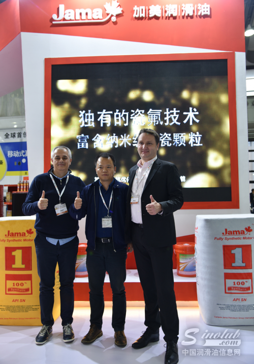 来自东南亚的菲律宾、中亚的乌兹别克斯坦、中东的迪拜、非洲的尼日利亚等客户,来到加美展区,对包括该公司金色1号在内的多款产品表现了很高的兴趣,一批接着一批地进行合作洽谈。一位叫ROBERT FUENTES东盟的先生说:“看到你们加美的展台非常的高端大气上档次,所以进来看看。我希望买一款全合成机油。请帮我介绍一下!”