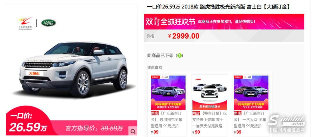 以路虎极光新尚版为例,一口价只需26.59万元;沃尔沃V60 Polestar,价格直降19万,一口价39.99万元;而双11开场才13秒,57台一口价的路虎极光就光速售罄了。
