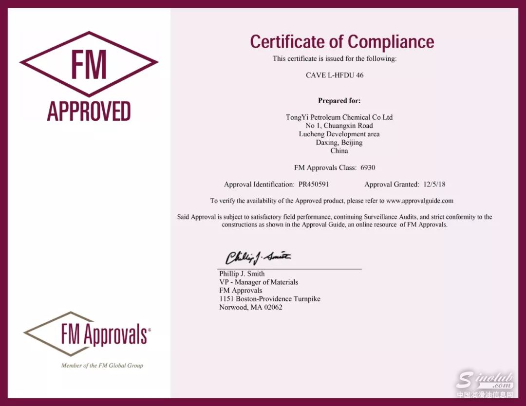 统一加威合成酯型难燃液压油成为FM中国区唯一获得此认证的中国品牌和产品,凭借的是优越的产品性能与卓越表现。其优势性包括:高闪点与高燃点,阻燃性能好;高粘度指数,粘温性能好;生物降解性能好,对环境更加友好;性能稳定,使用寿命更长。自产品上市以来广受好评,获得包括鄂尔多斯集团、青岛特殊钢铁、杭州保利电梯导轨制造等多家大客户认可与信赖。