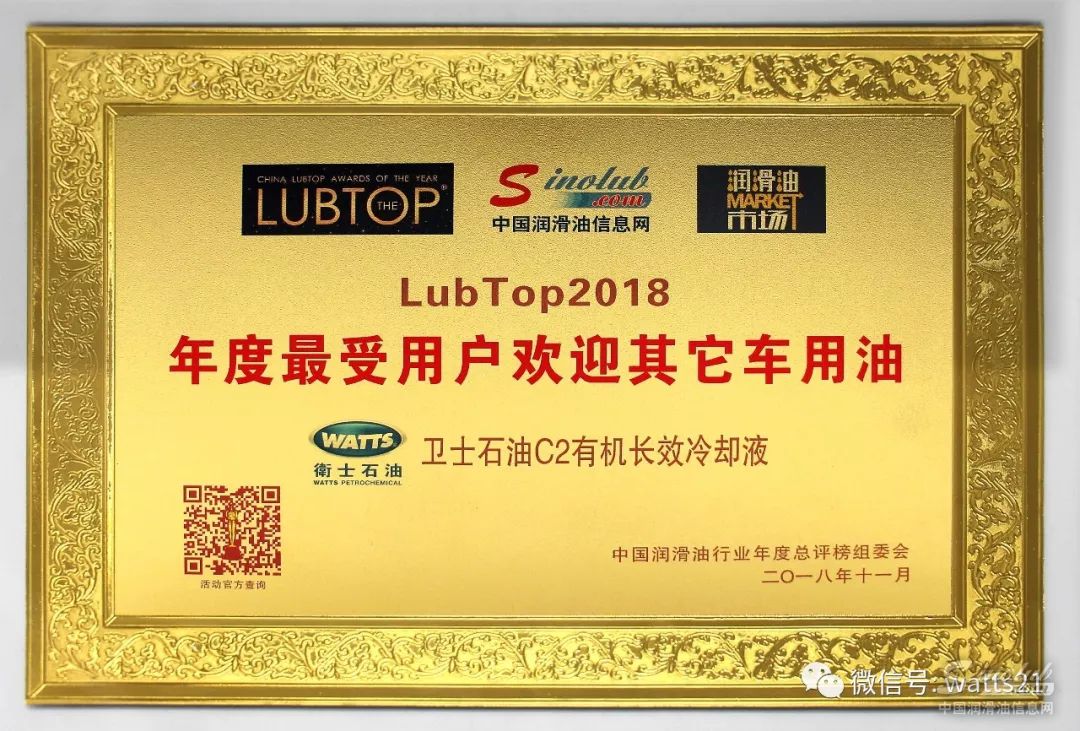 卫士石油获得“润滑油界奥斯卡”年度奖项之“LubTop2018年度最受用户欢迎其它车用油”