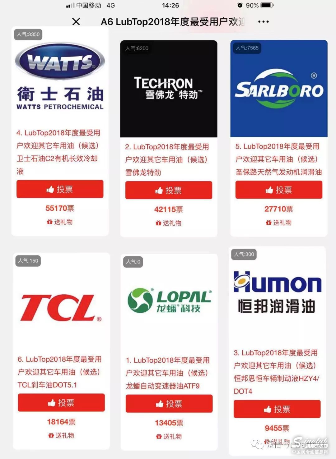 LubTop总评榜(中国润滑油行业年度总评榜)是润滑油产业链最具规模和影响力的全国性评选活动,已连续举办6届,被广泛认为是“润滑油和汽车后市场行业年度奥斯卡”,2018年第六届年度盛事活动关注人数高达8000万人。