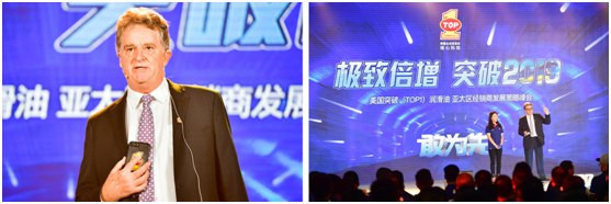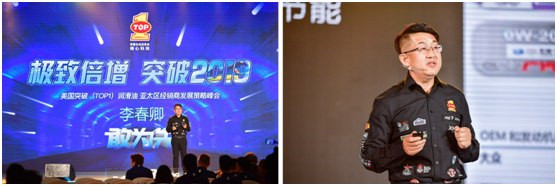 峰会上,针对突破(TOP1)在中国的市场发展现状,美国突破润滑油大中华区总裁李嘉、执行总经理李春卿分别进行了干货分享。李嘉总表示,润滑油的经销需要找对寻找用户,挖掘用户的方法,也透露2019年将建立专业废油回收厂,再生后基础油符合API标准,与新油没有任何区别。