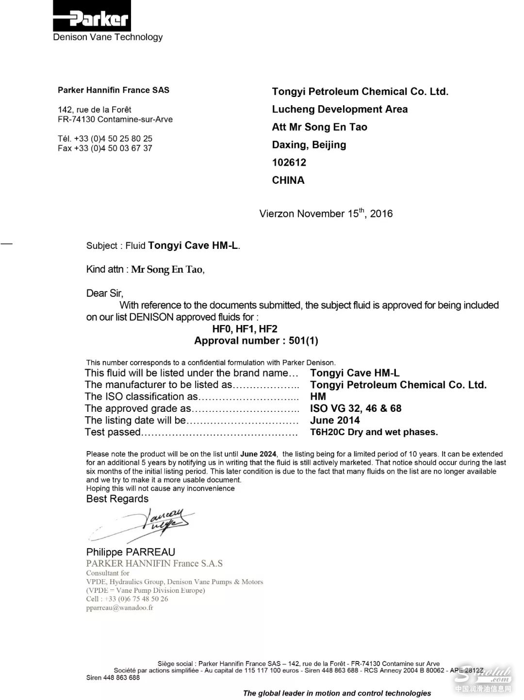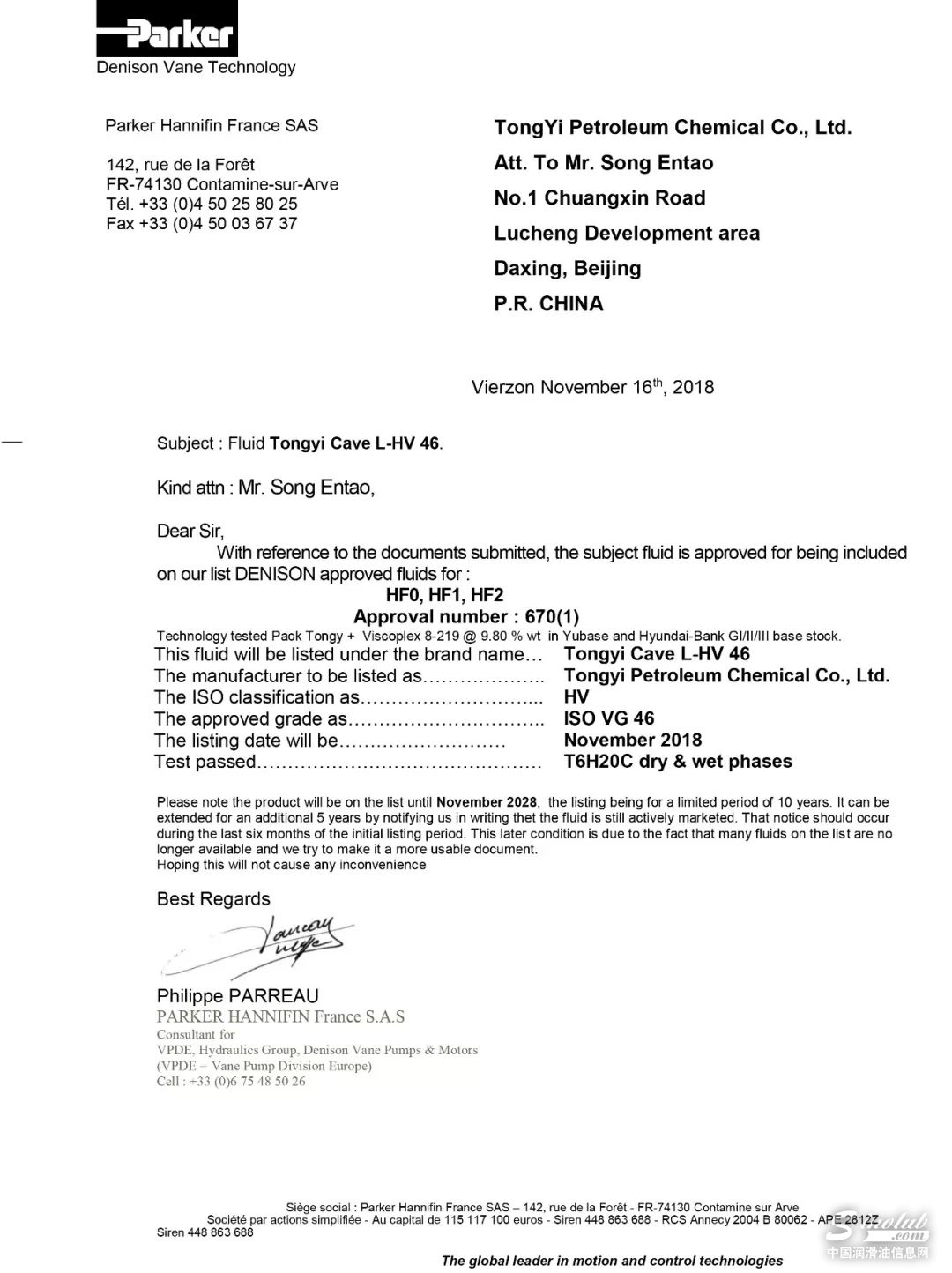 至此,统一液压油产品全线均获得此项认证,这是统一液压油产品性能达到国际公认、高性能要求标准的证明。