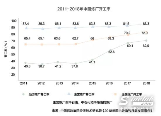 炼油产能过剩的形势已经非常严峻。据中国石油集团经济技术研究院发布《2018年国内外油气行业发展报告》称,2018年中国石油表观消费为6.25亿吨,同比增加0.41亿吨,增速为7%。2018年国内炼油能力过剩0.9亿吨/年左右,而2019年的过剩产能则将升至约1.2亿吨/年,同比增长三分之一。