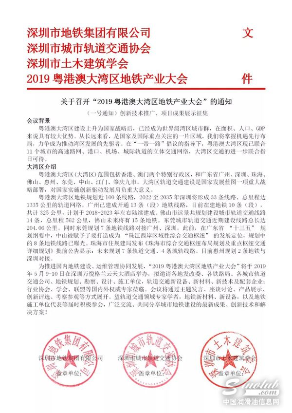 关于举办“2019粤港澳大湾区地铁产业大会"的通知