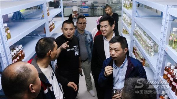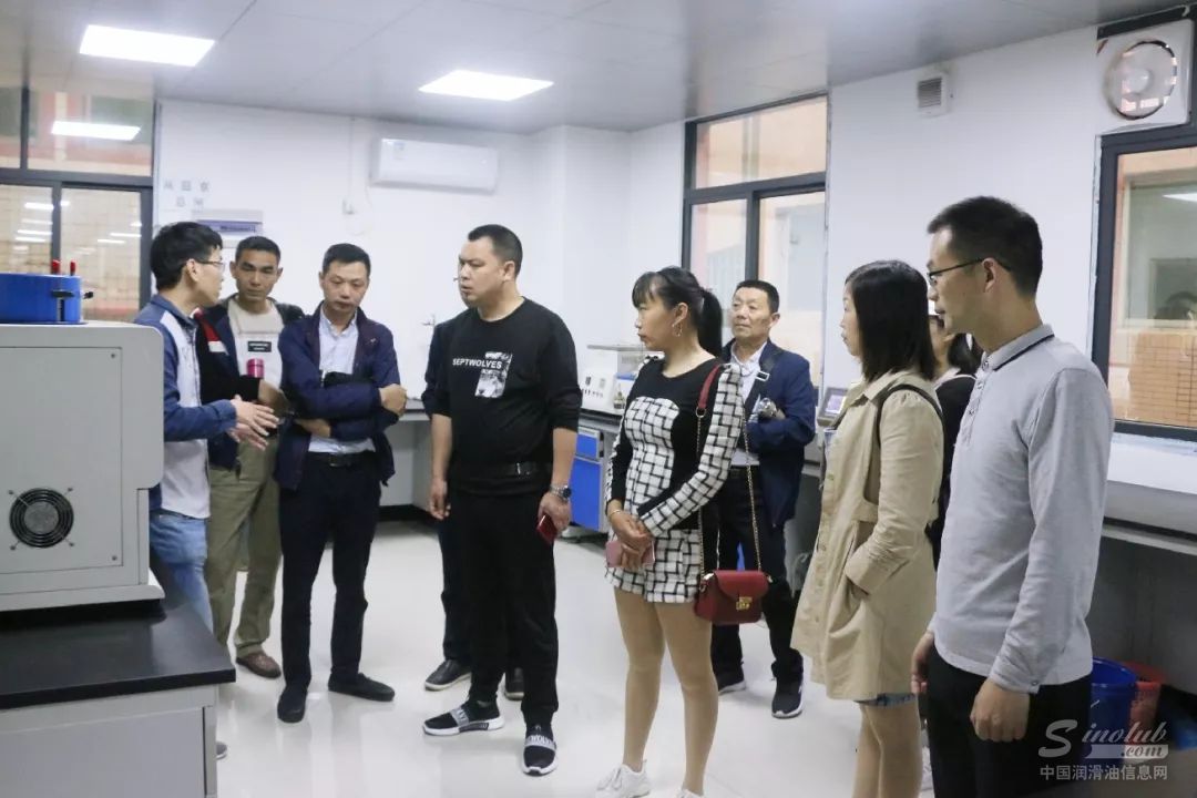 优秀经销商代表到达鲁克(中国)润滑油有限公司厂区,在陈文渊厂长及技术部陈志东总监带领客户参观了鲁克公司润滑油产品展厅、荣誉室、生产车间、成品油储存区、调和车间、基础油储备区、实验室,在实验室陈总监让大家逐一认识了先进的实验检测设备。