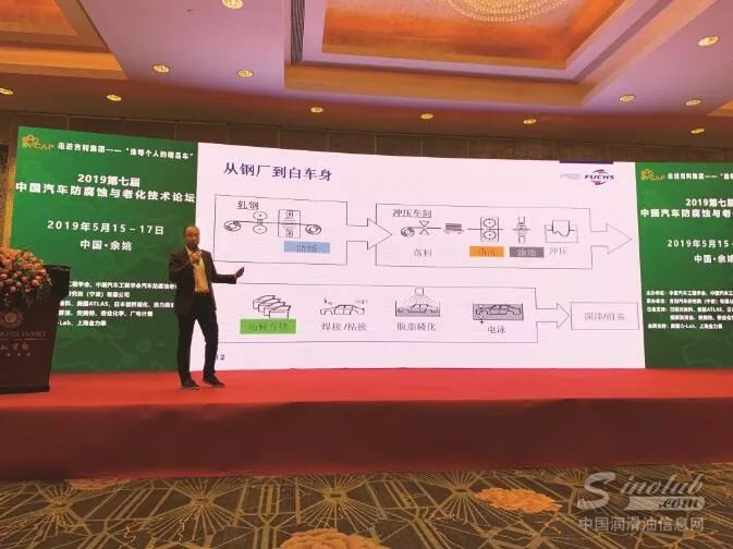 福斯润滑油防锈产品经理李云涛先生,受邀在大会上发表主旨演讲:《钢板冲压用油对整厂防锈的影响》,同与会代表分享了福斯润滑油在汽车冲压防锈领域的研究与最佳实践。他指出:“钢板防锈及冲压用油,不仅对于整车白车身的过程防锈非常重要,而且还关系到冲压、焊装、粘结、涂装等工序的质量。从钢板出厂时的静电喷涂防锈油,到落料后的清洗冲压防锈油,以及冲压防锈油,这需要用户综合整体考虑,避免对后道的粘接,电泳造成影响。”