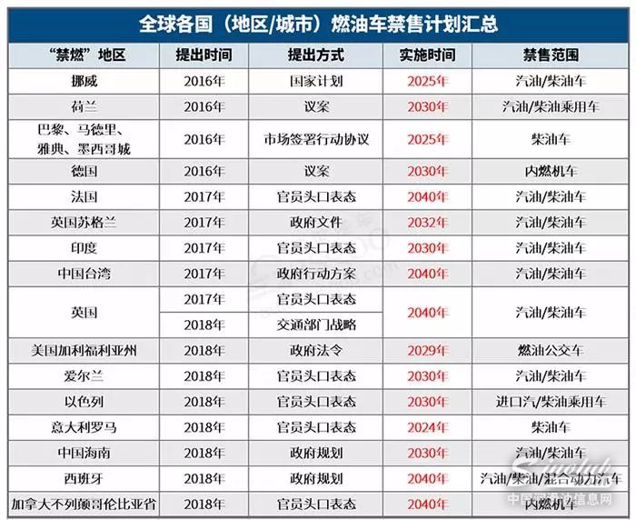 而2050年,这一时间节点上一次出现还是在2015年联合国气候变化大会上,包括德国、英国、荷兰、挪威以及美国18个州等在内的国家和地区,组成了“零排放车辆同盟”,并承诺到2050年该联盟内国家将不再销售燃油车。随后,挪威、荷兰、德国、英国、西班牙等国家、地区及城市陆续公布禁售燃油车的时间表,都将这一时间提前了,其中最早的是意大利罗马的2024年,最晚的则是以法国为代表的2040年,中国的加入便成为了最晚的那一个。