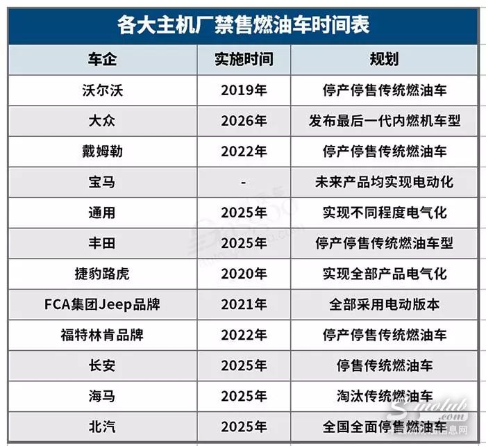 但面对越发严苛的排放规定,加上欧洲各国禁售燃油车的时间表制定、中国“双积分”政策的落地实施,迫使车企主动规划停产停售燃油车的战略,加速向电气化转型。