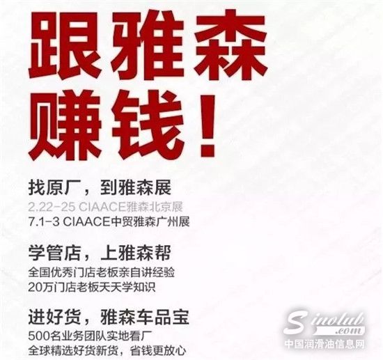 如何扭转现状,实现销售更高效、利润更高的营销模式,在商业模式不断变幻的情况下,站稳脚跟?各大润滑油经销商7月1日一起来广州看雅森如何演绎←点击先睹为快