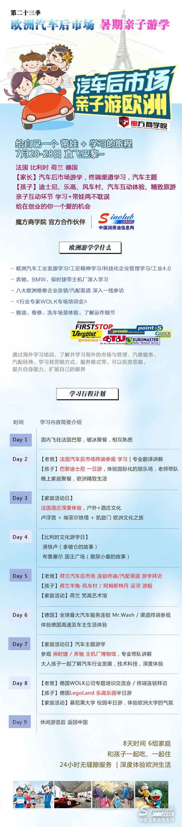 作为融入汽车和机械基因的润滑油行业头部全媒体平台,中国润滑油信息网(www.sinolub.com)是本次游学活动的官方合作伙伴,扫描下方二维码报名参加本次活动,让你学习、带娃两不耽误,还有双语老师带你体验欧洲生活!活动仅限6位企业家或家庭,满额即止,赶快来报名吧!