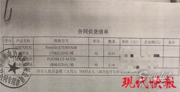 涉案公司中查获的合同供货清单