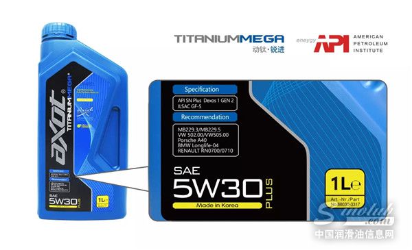 适逢API (American Petroleum Institute)美国石油协会建立100周年。作为全球最权威和受众最广的润滑油认证体系,美国石油协会自去年年底至今年年初正式推出了业界最高汽油乘用车机油标准---API SN PLUS。而AXOT绅途TITANIUMMEGA动钛锐进系列旗下的SAE 5W30与SAE 5W40两款粘度产品则成为了业内首批获得此官方可查询认证的品牌产品之一。