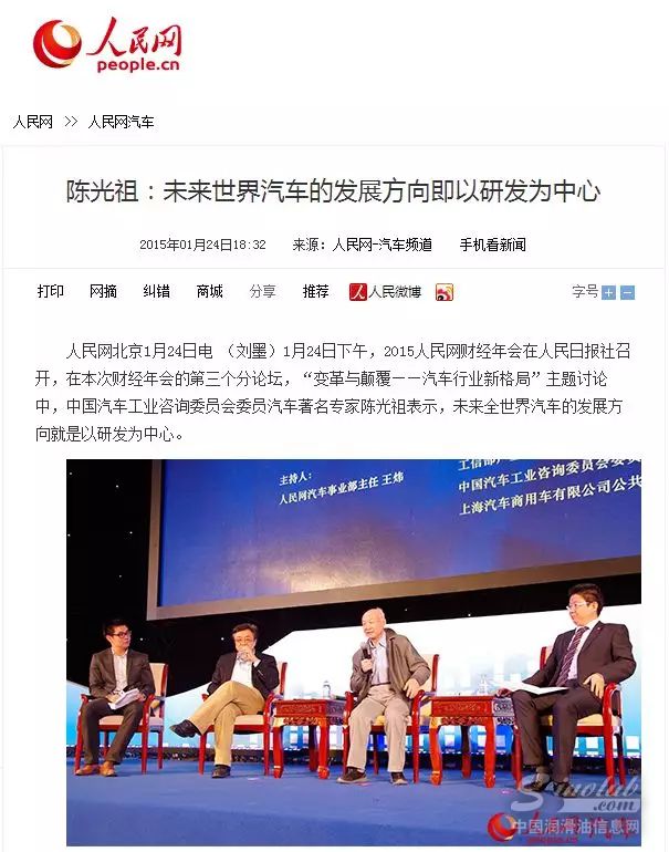 陈光祖提出了许多引发汽车行业深思的观点与意见:“一个低碳、绿色、节能、可持续发展的汽车产业美好前景正呈现在我们面前”、“中国汽车产业要在核心技术上创新,才有属于我们自己的竞争力”、“未来世界汽车的发展方向即以研发为中心”等等。
