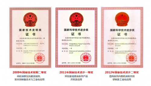 昆仑润滑获得省、部级科技进步奖34项,申请国家专利104项,为国家与行业润滑油剂标准制修订单位,制修订国行标89项、企标230项;四年三获国家奖,包揽了润滑油行业国家级科技进步和技术发明全部奖项,特别是齿轮油领域的国家发明奖代表了中国润滑油自主技术的最高水平,以自主创新的添加剂合成技术、添加剂复配技术,两大“核心技术”,让昆仑润滑用一次次震惊世界的创造,用浓墨重彩的一笔,将“中国制造”改写为“中国创造”。